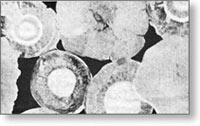 Na slici mogu da se vide zrna grada u prirodnoj veličini. Neka od njih su rasečena, pa se lepo vidi slojevitost njihove građe. Broj slojeva govori o tome koliko je puta grumuljica leda padala kroz oblak i bivala ponovo podignuta na velike visine.